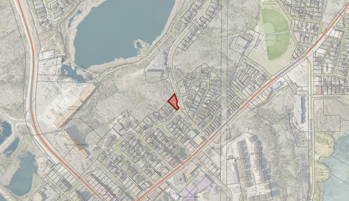 The Council of the City of Yellowknife will hold a PUBLIC HEARING at six o’clock in the evening (6:00 p.m.) on Wednesday, March 25, 2026, in City Hall Council Chamber to hear any submissions to By-law No. 5124, a by-law to amend Zoning By-law No. 5045, as amended. The purpose of the Zoning By-law amendment is to rezone three lots - Lots 1 & 4, Block 157, Plan 1385 and Lot 5, Block 157, Plan 4884 from PR – Parks and Recreation to OT – Old Town Mixed Use. Please note Lot 5, Block 157, Plan 4884 is a consolidation of Lots 2(u) & 3, Block 157, Plan 1385 (as indicated in previous notices of this rezoning proposal). The subject land is located at civic address 4002 49 Avenue, at the intersection of 41 Street and 49 Avenue.